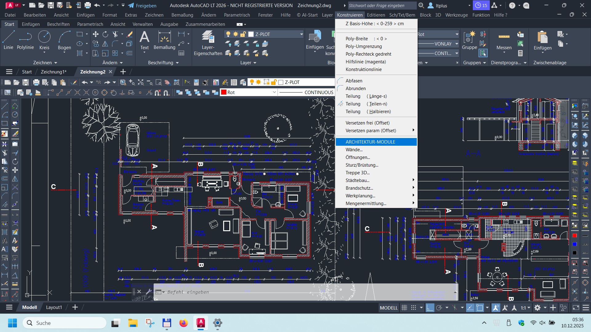 3. Zum Schluss 'Öffnen' Sie die soeben exportierte und bereinigte Zeichnung, skalieren sie ggf. mit Faktor 100 (LTplus arbeitet in Zentimetern) und bewegen sie zum Nullpunkt (0,0,0)